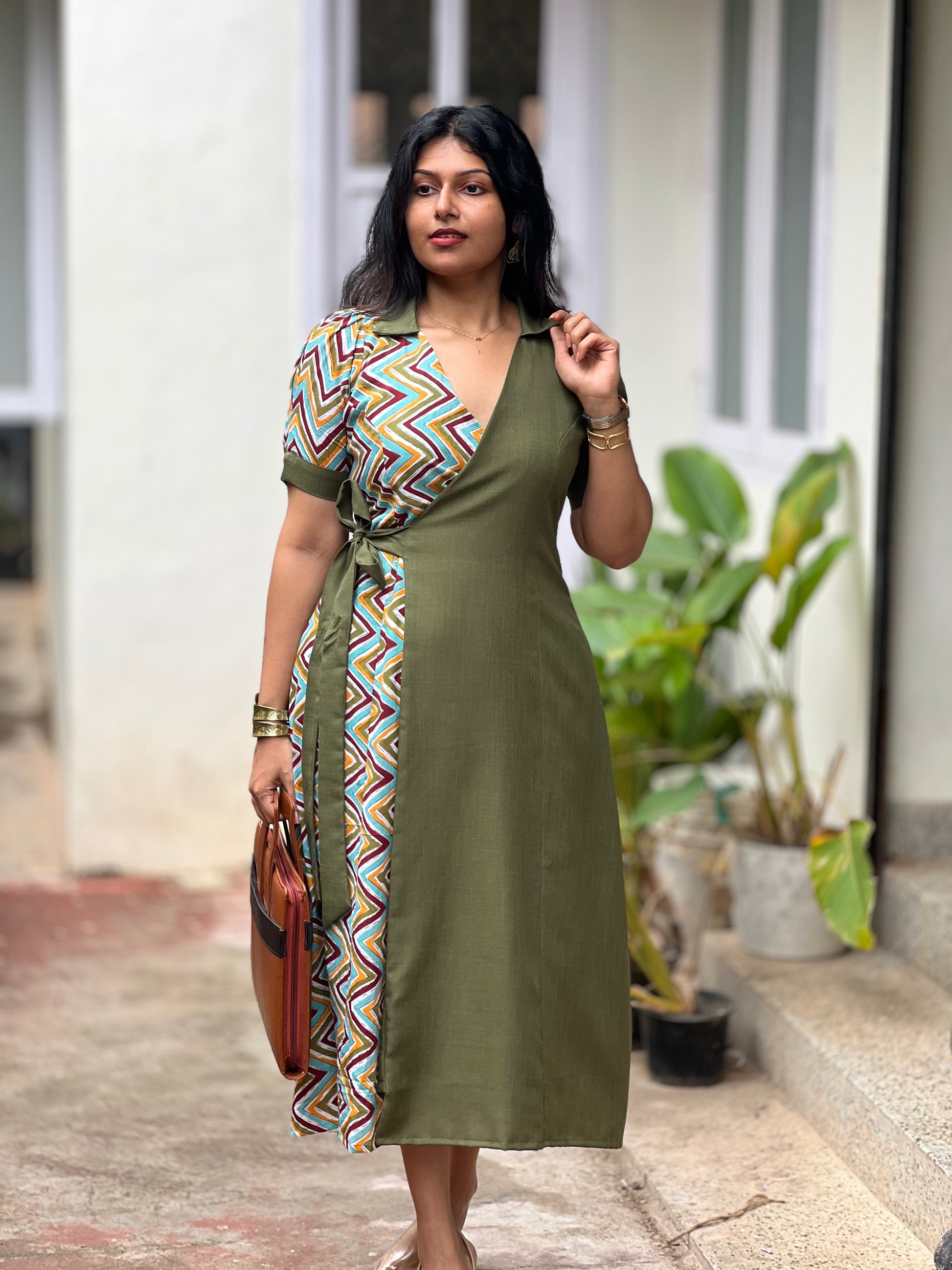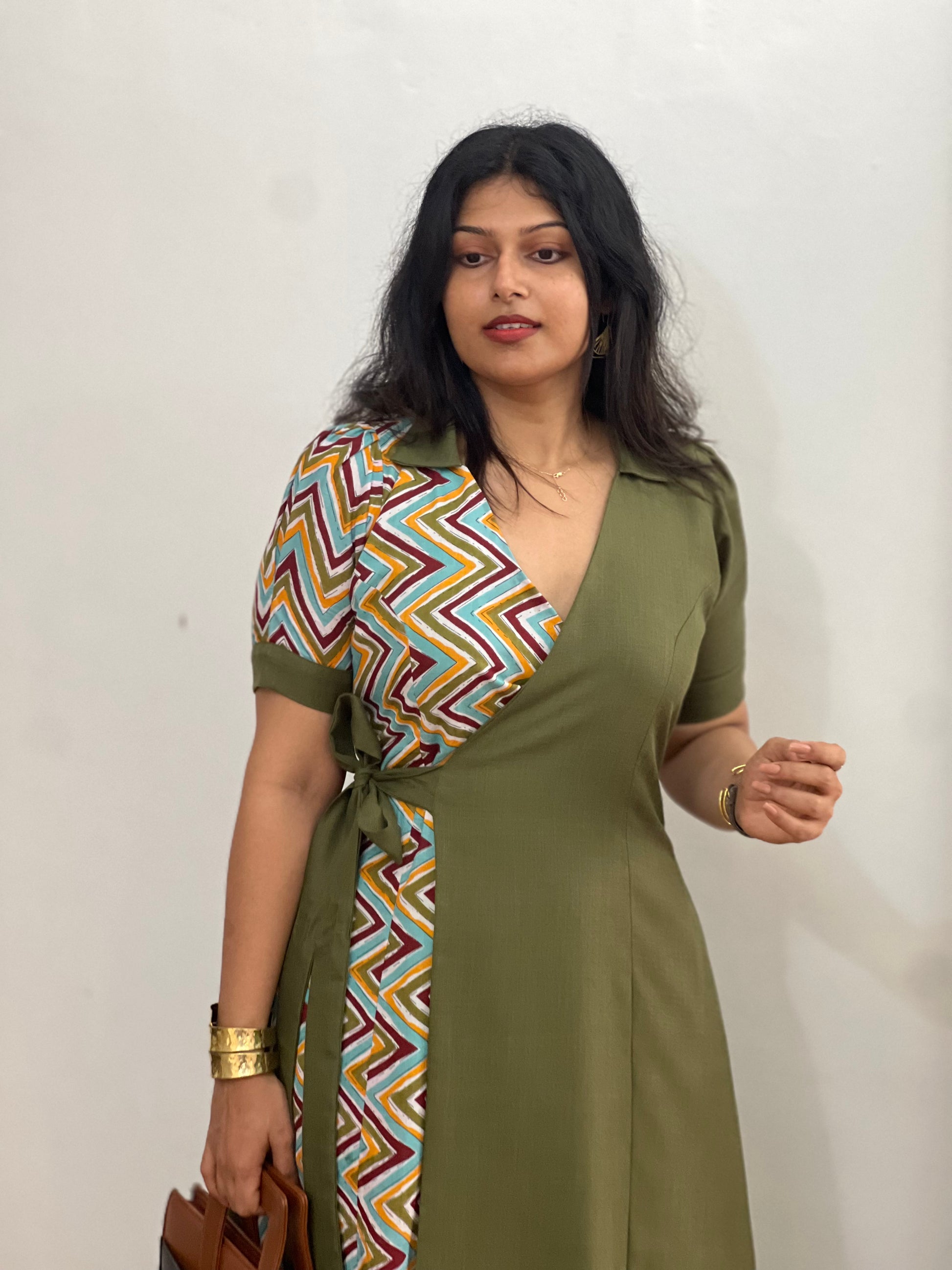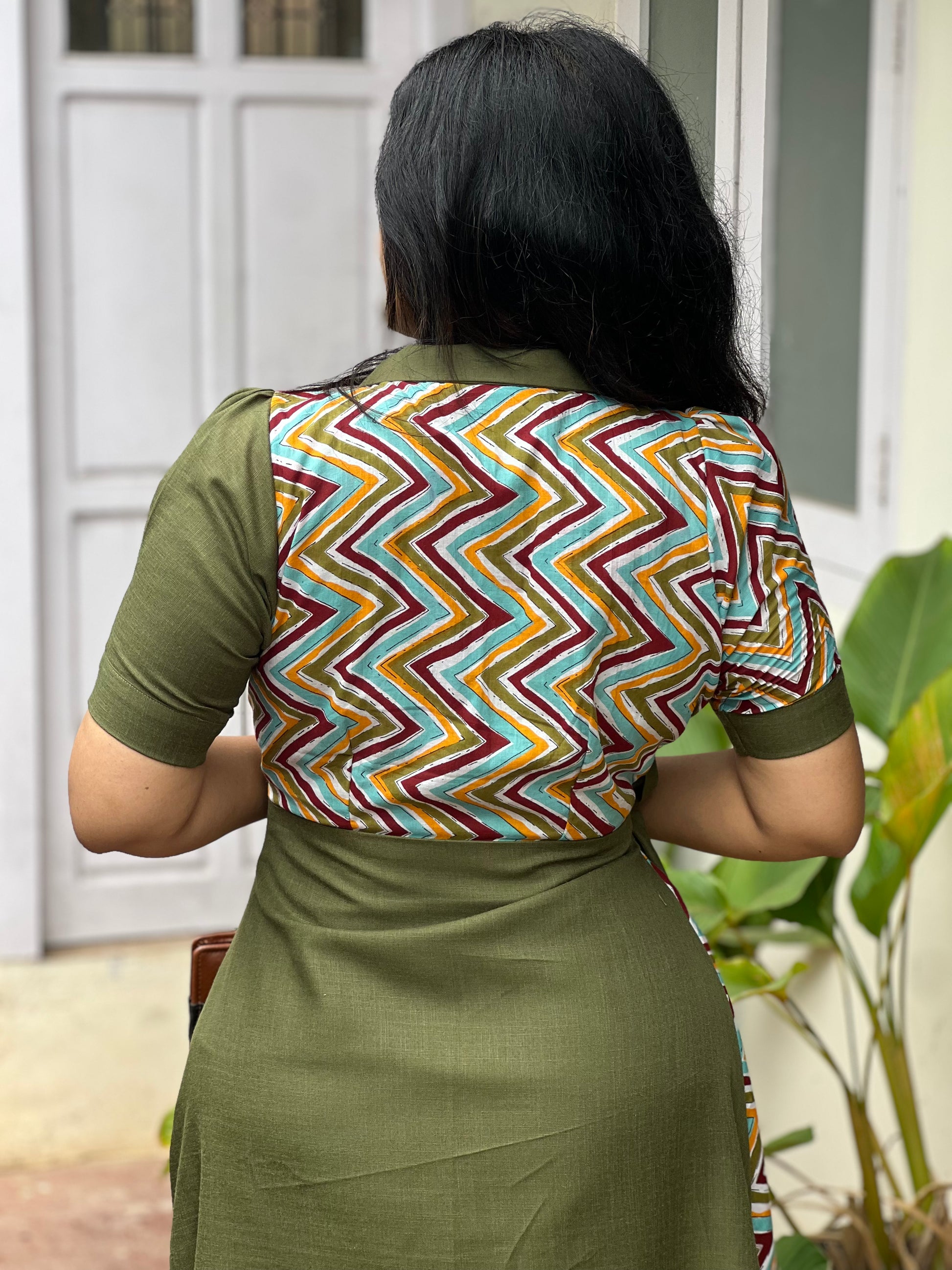 Detail: Contrasting geometric patterned panel for a trendy, statement look