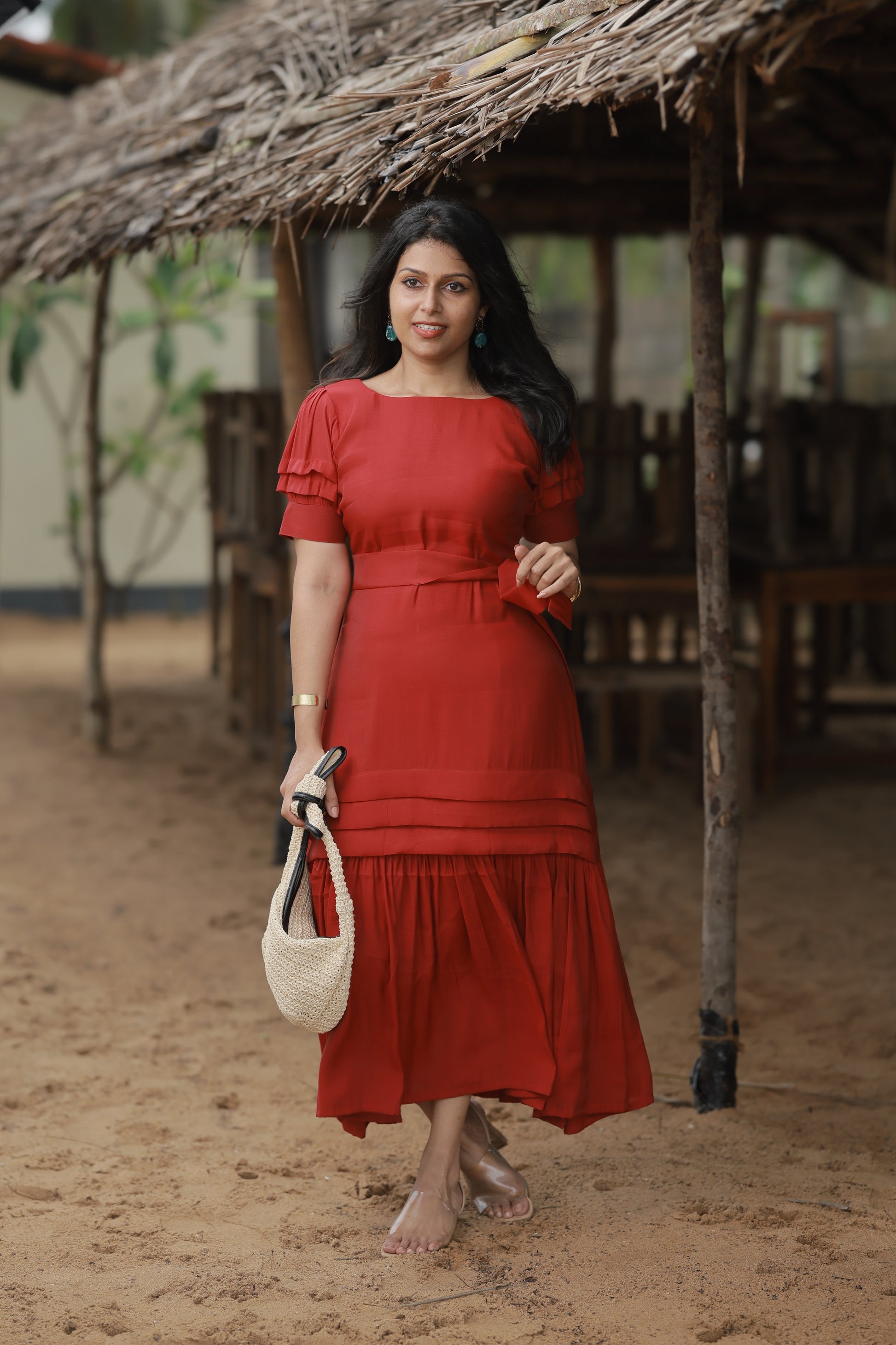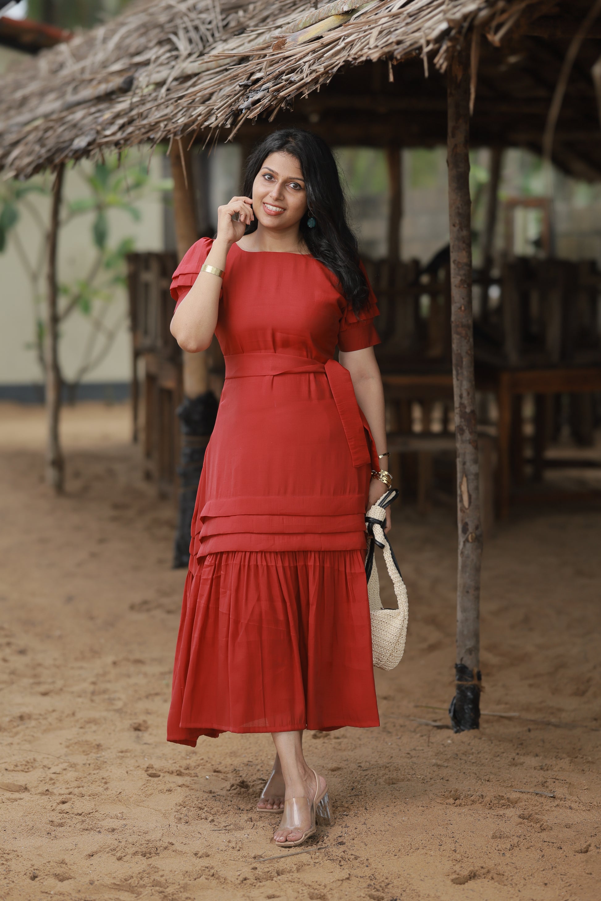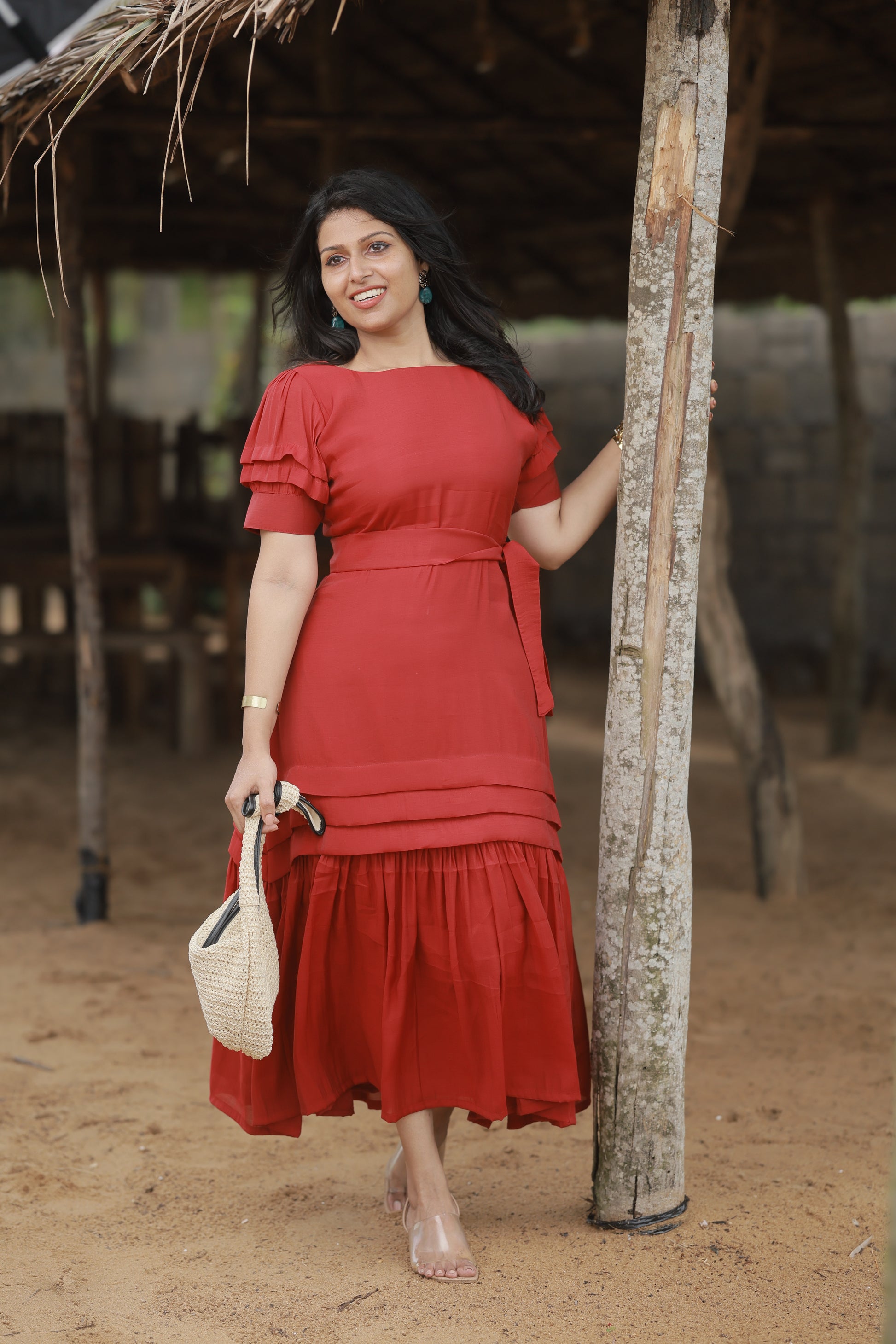 Introducing December – your ultimate Christmas statement piece in that perfect festive red. This isn't just a dress; it's confidence wrapped in luxury, designed to make you absolutely unforgettable this holiday season.