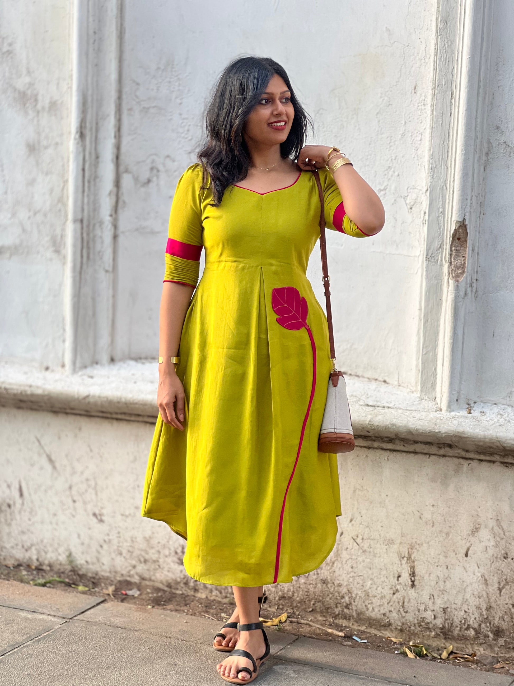 Design: Leaf appliqué details & leaf neckline