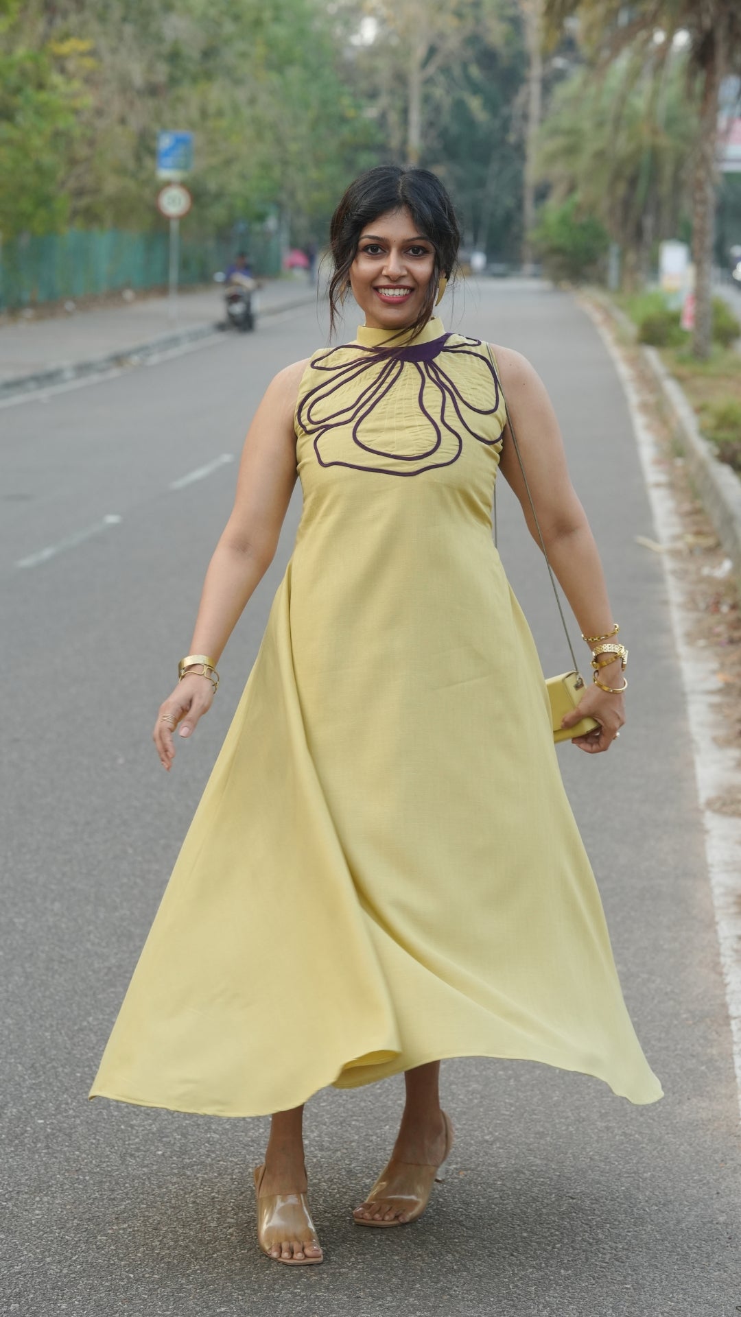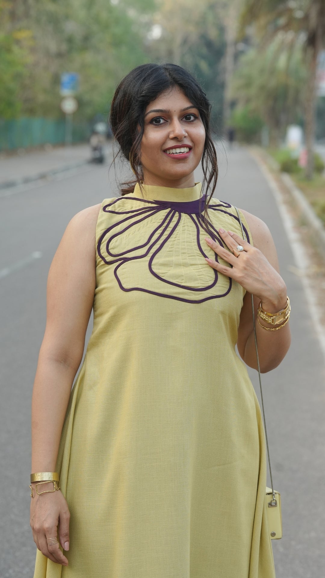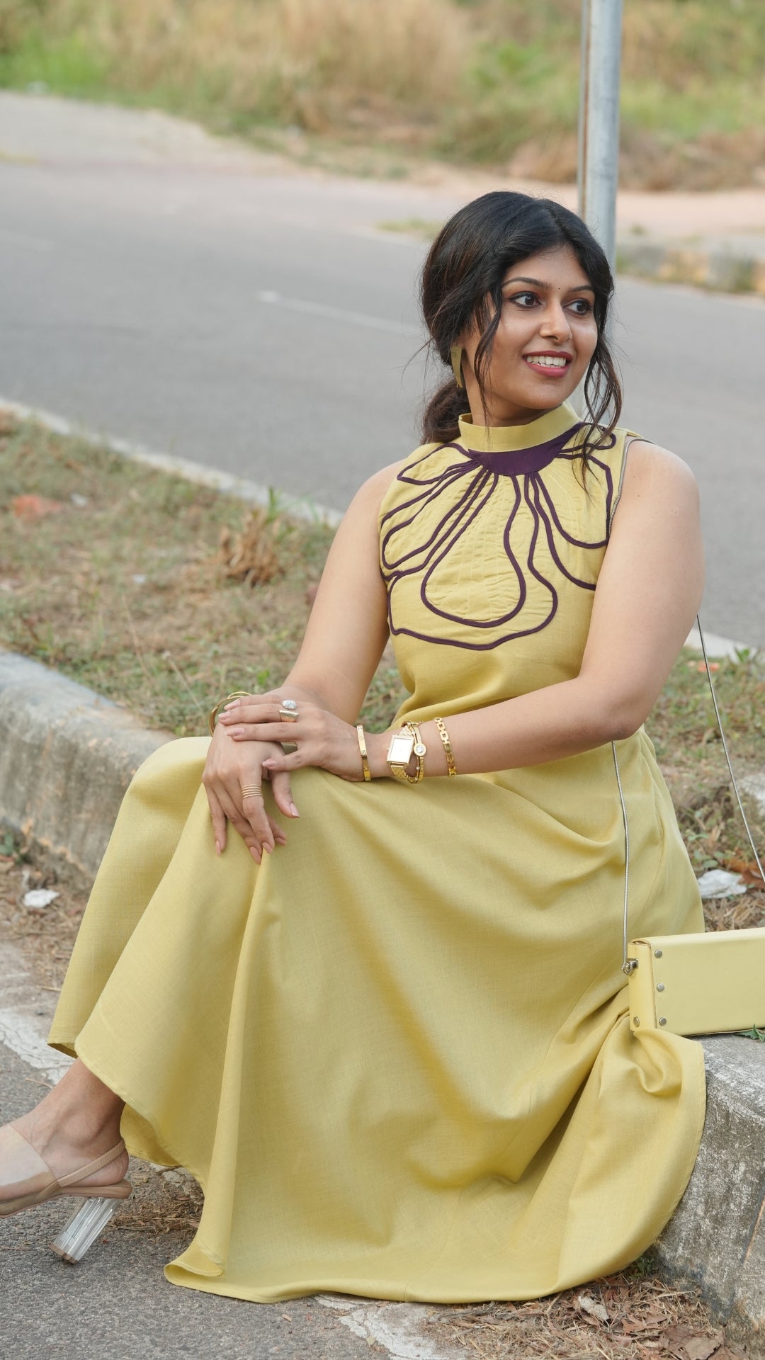 Pair the Lilac Dress with nude or white heels and minimal jewelry for a soft, polished look, or add statement earrings for a more elevated outfit.