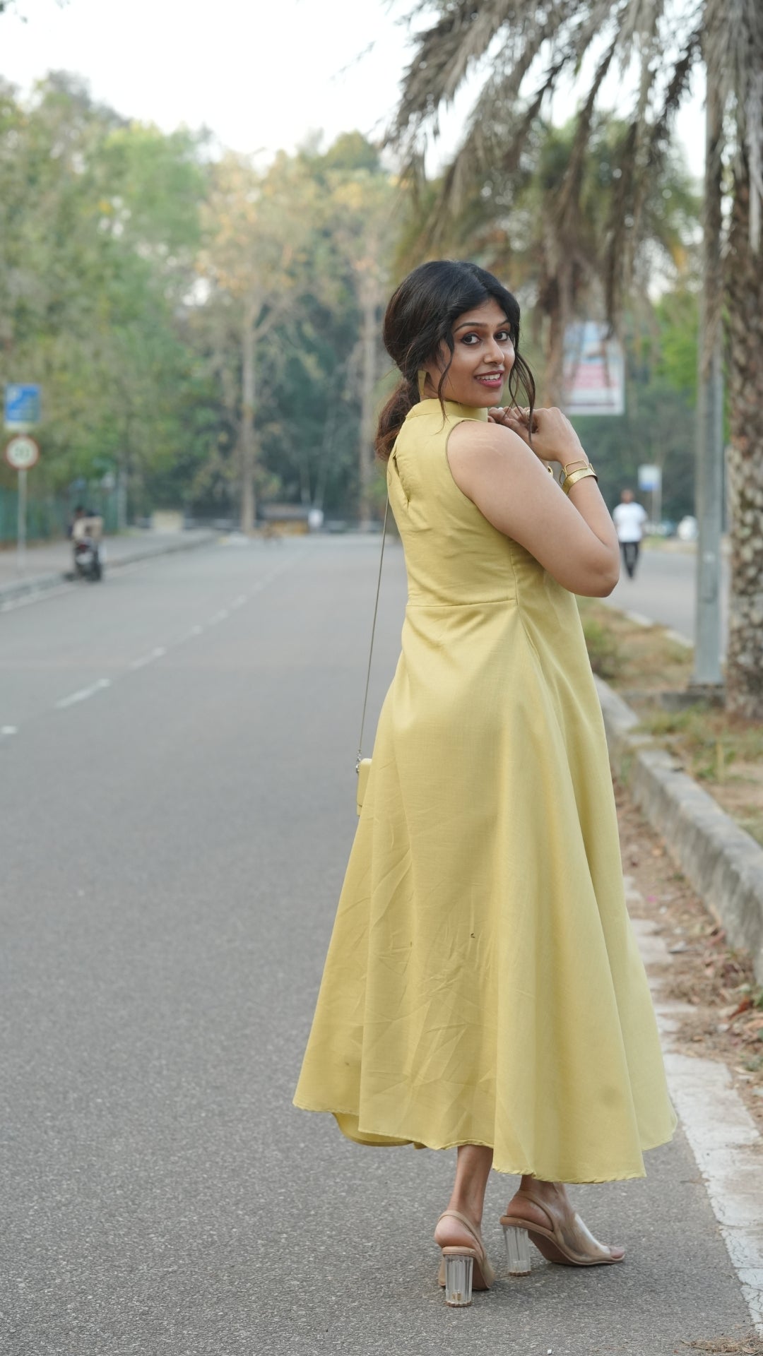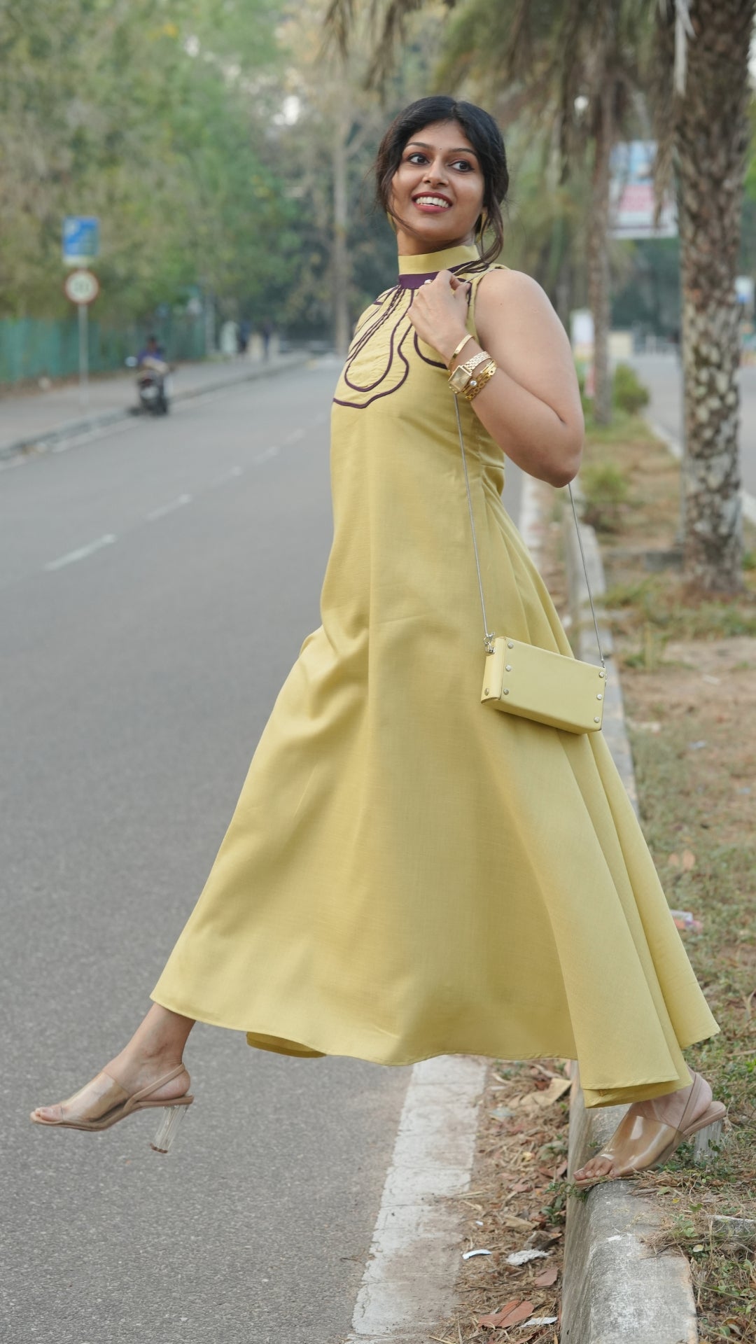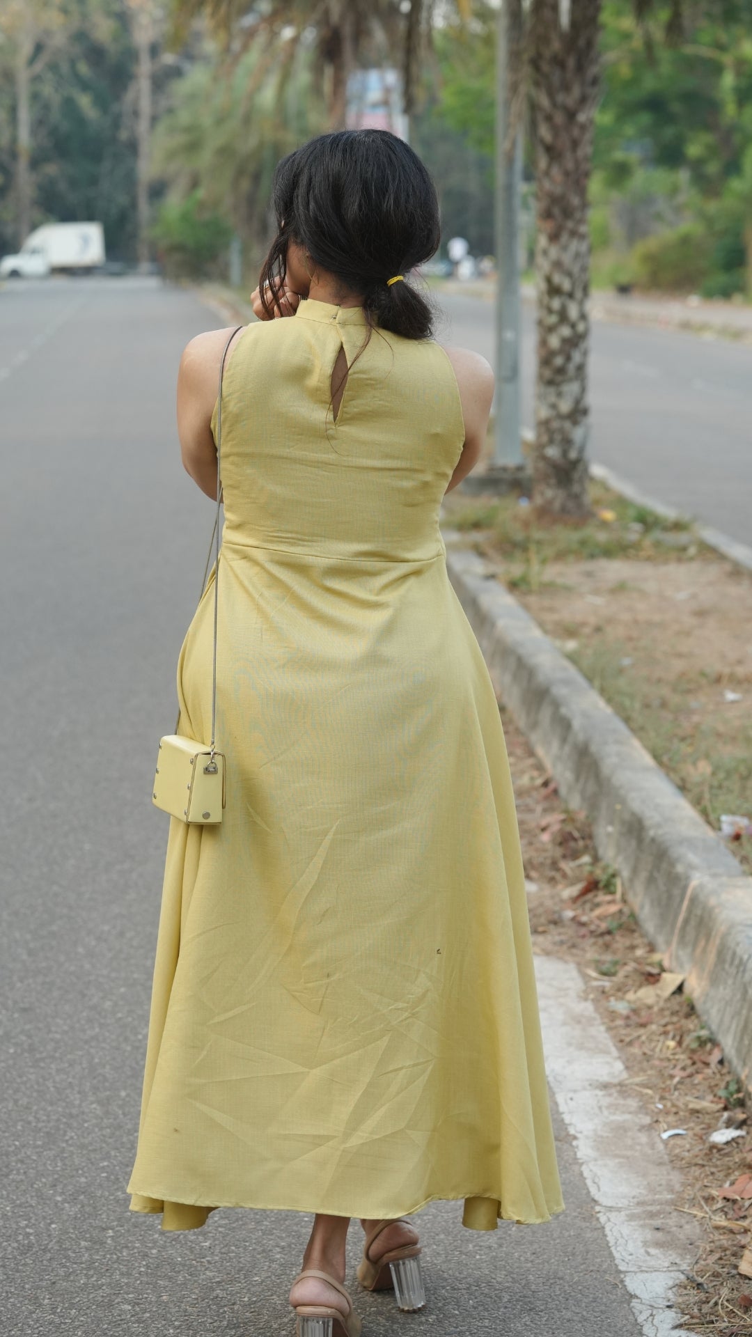 Pair the Lilac Dress with nude or white heels and minimal jewelry for a soft, polished look, or add statement earrings for a more elevated outfit.