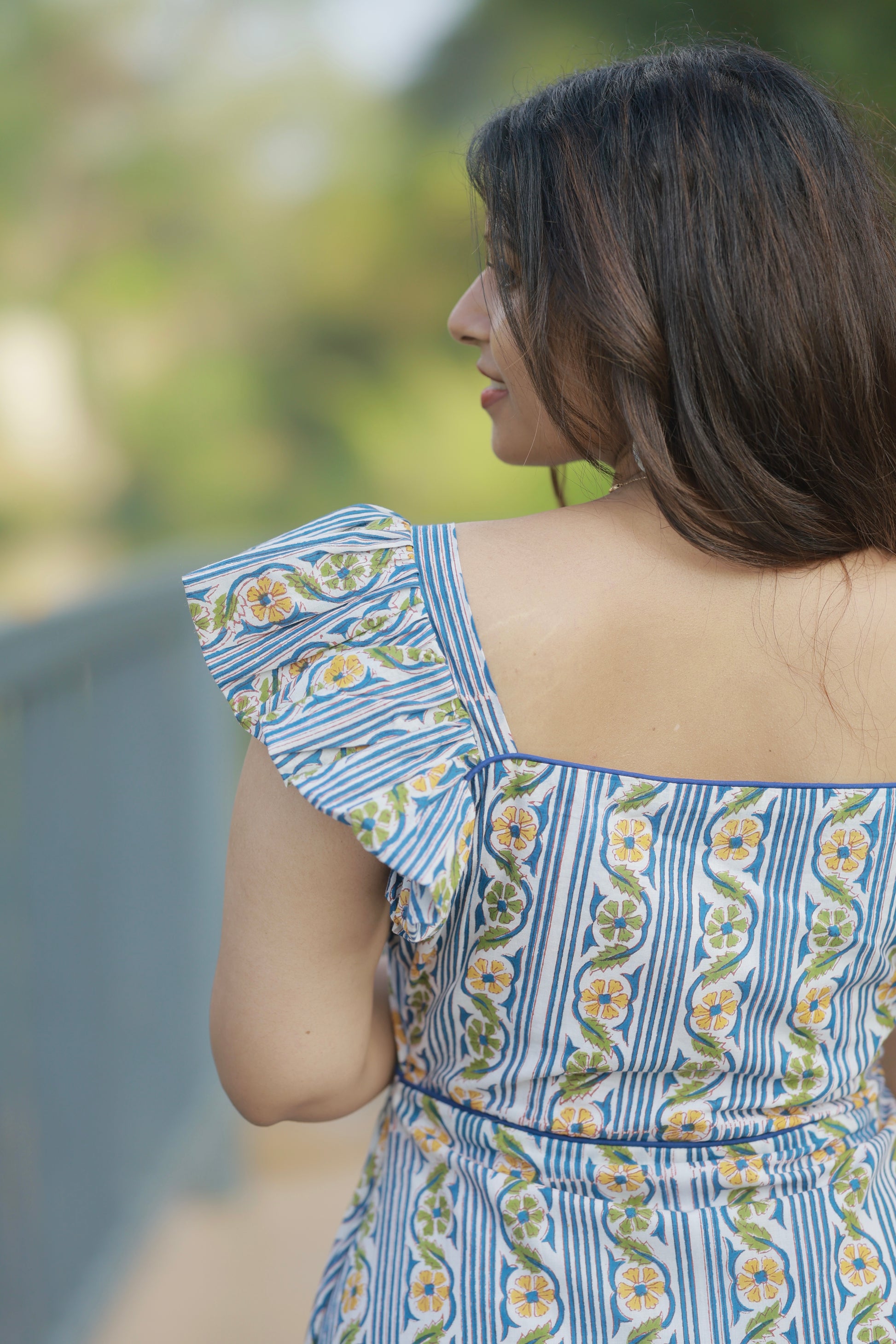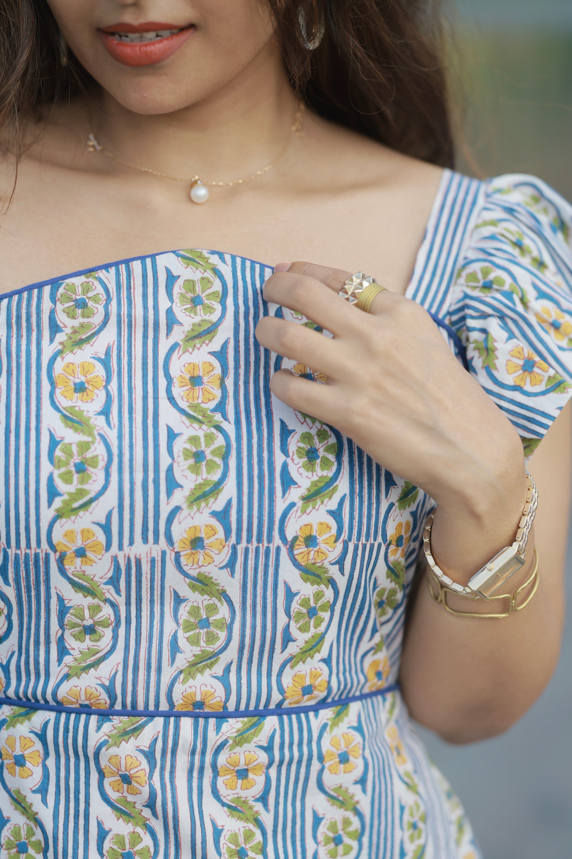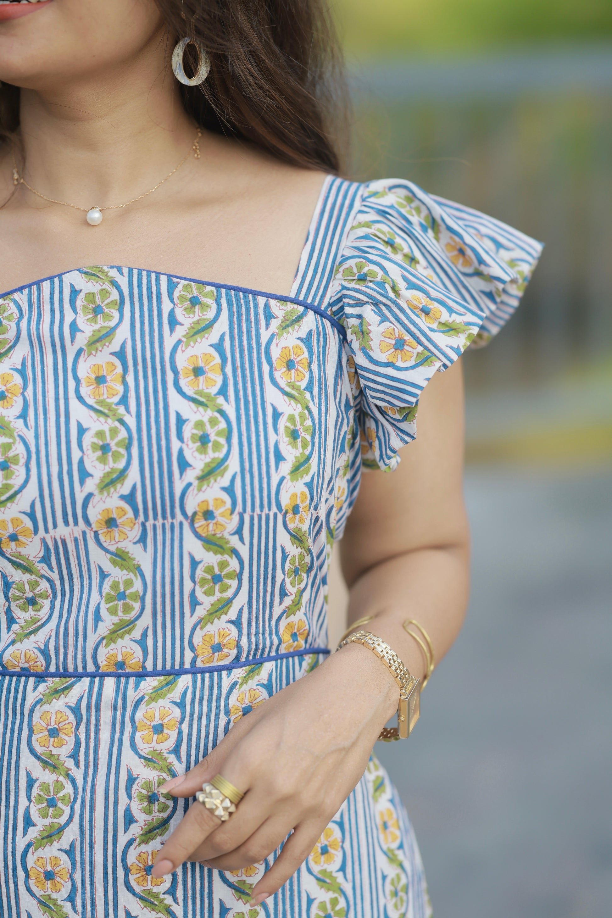 Step into sunshine with the Madhumita dress – a stunning fusion of structured sophistication and breezy femininity. Crafted in premium cotton that moves with you, this show-stopping piece is designed to turn heads from brunch to sunset strolls.
