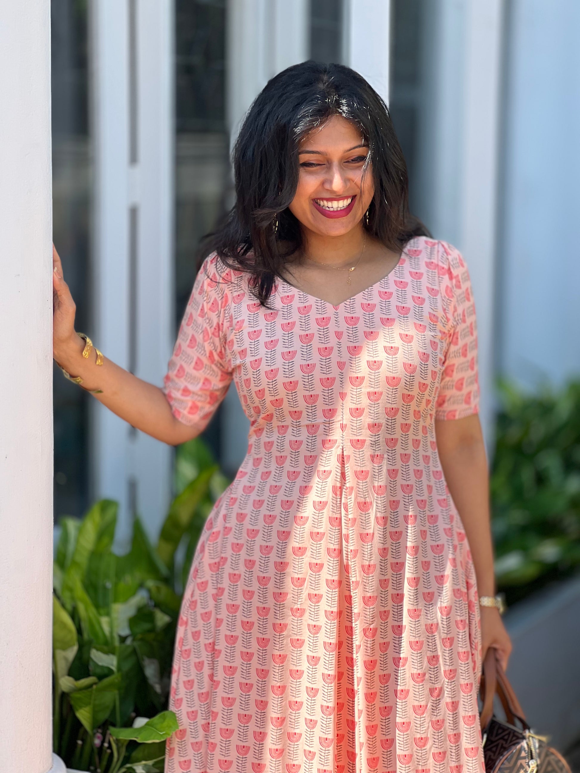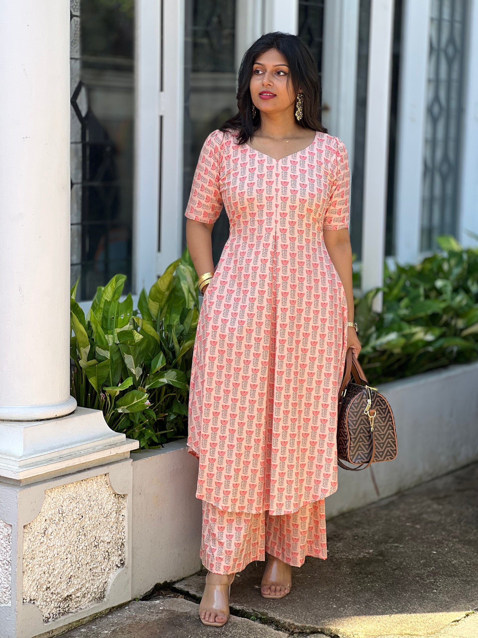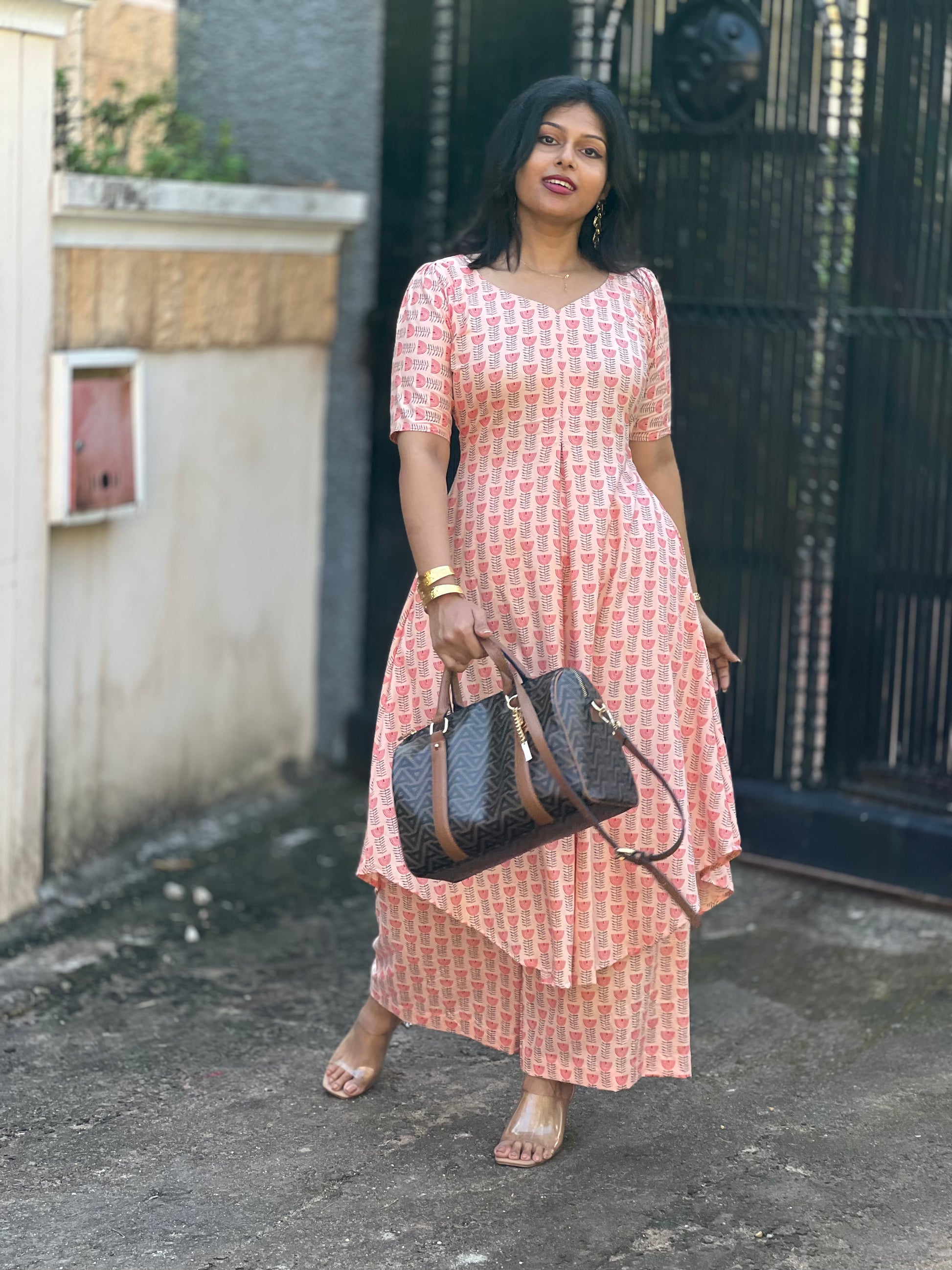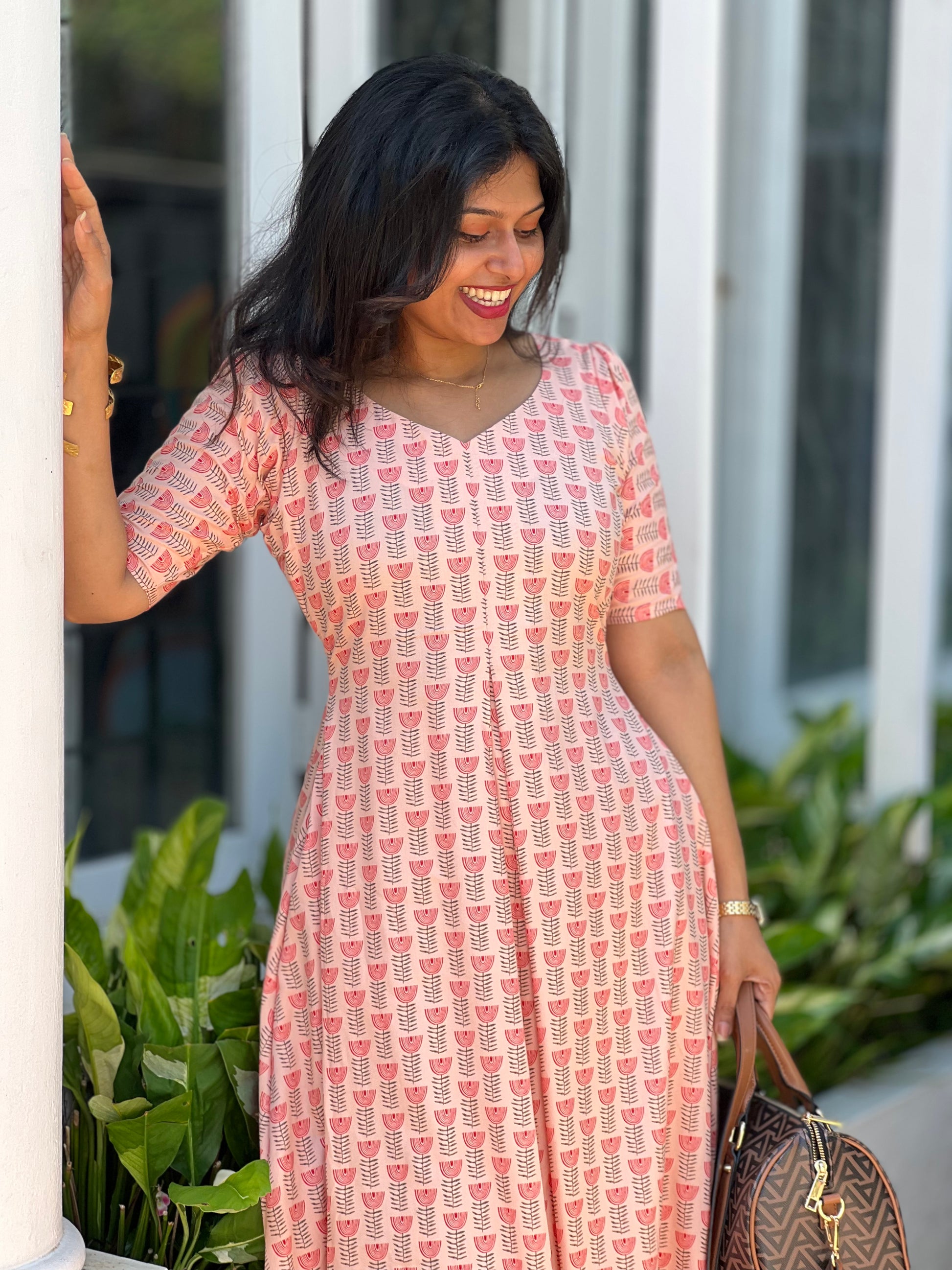 - Print: Delightful pink and red floral pattern that adds a touch of sophistication.
