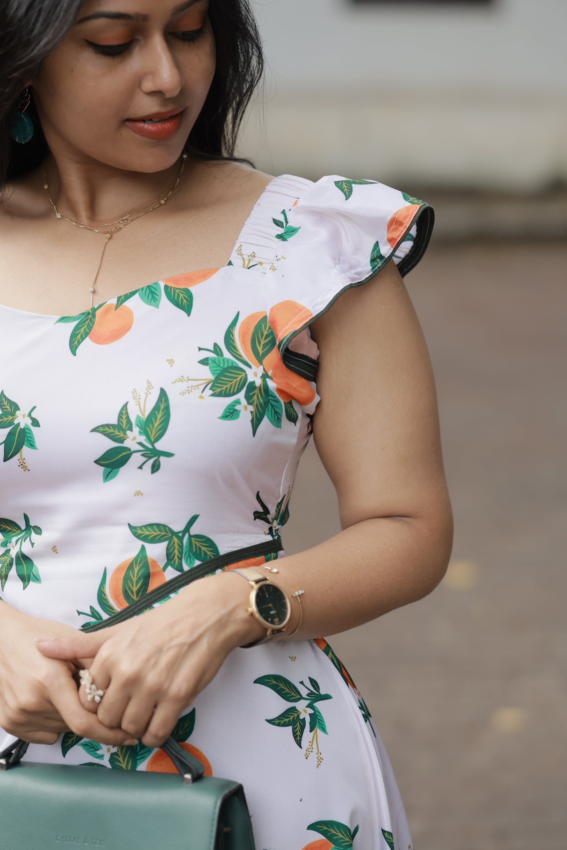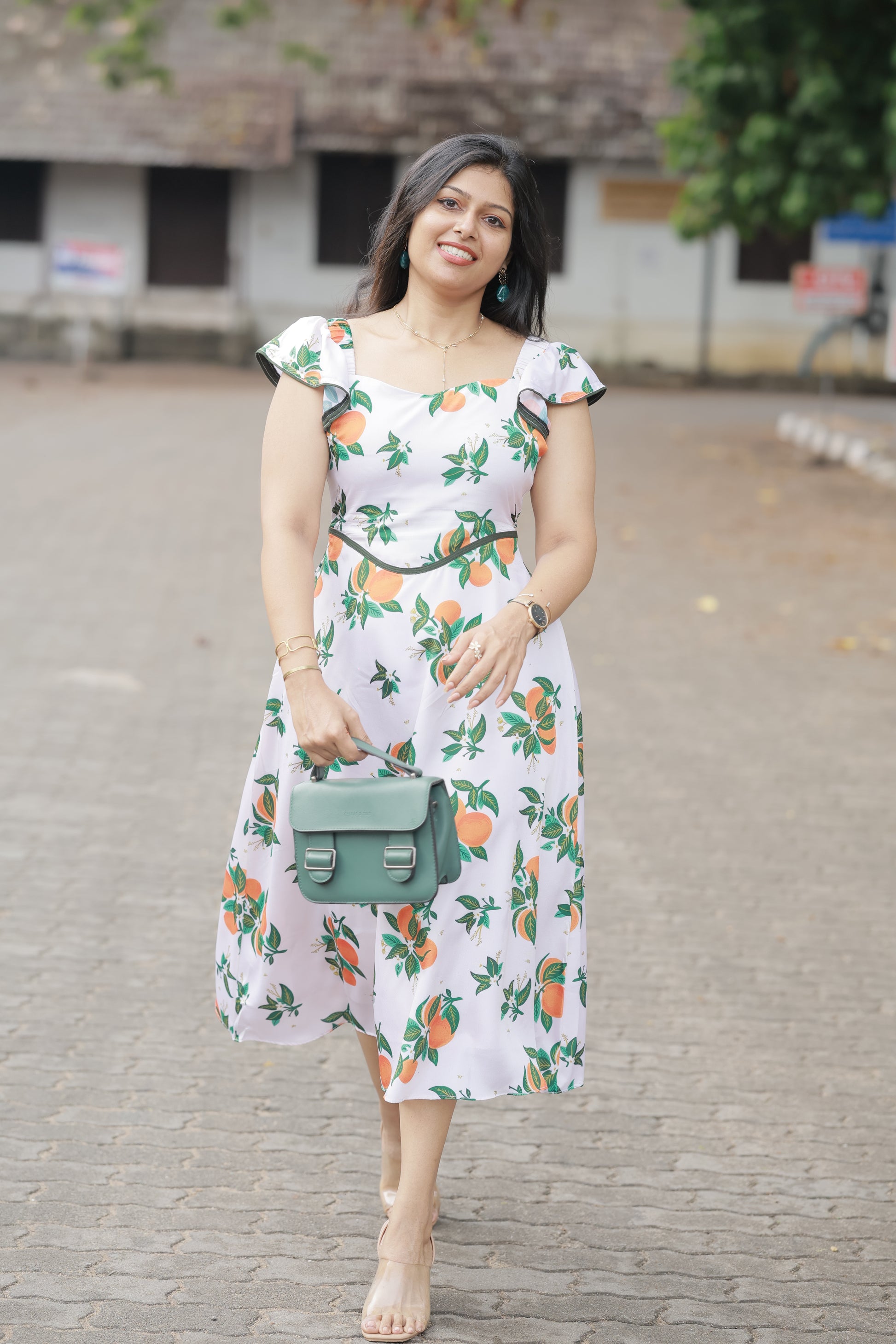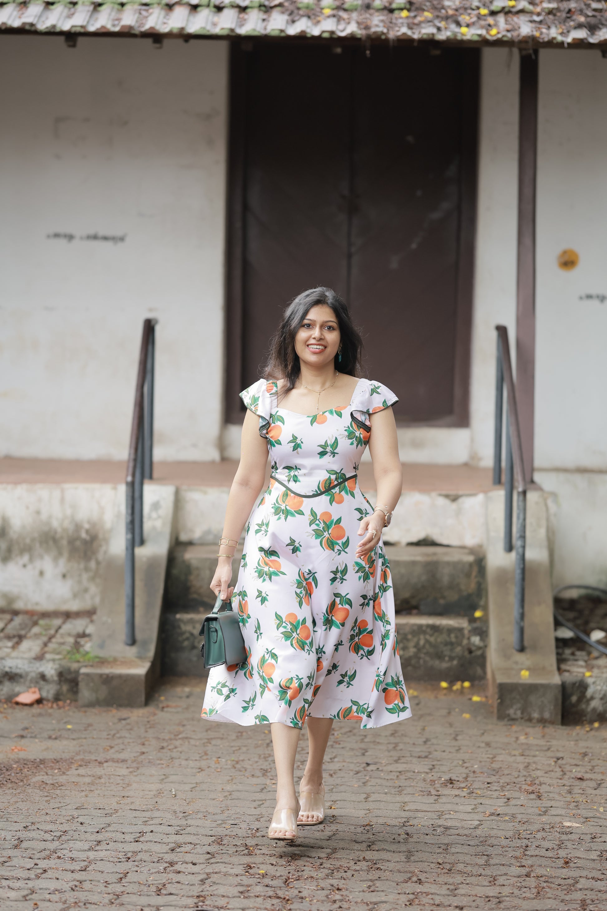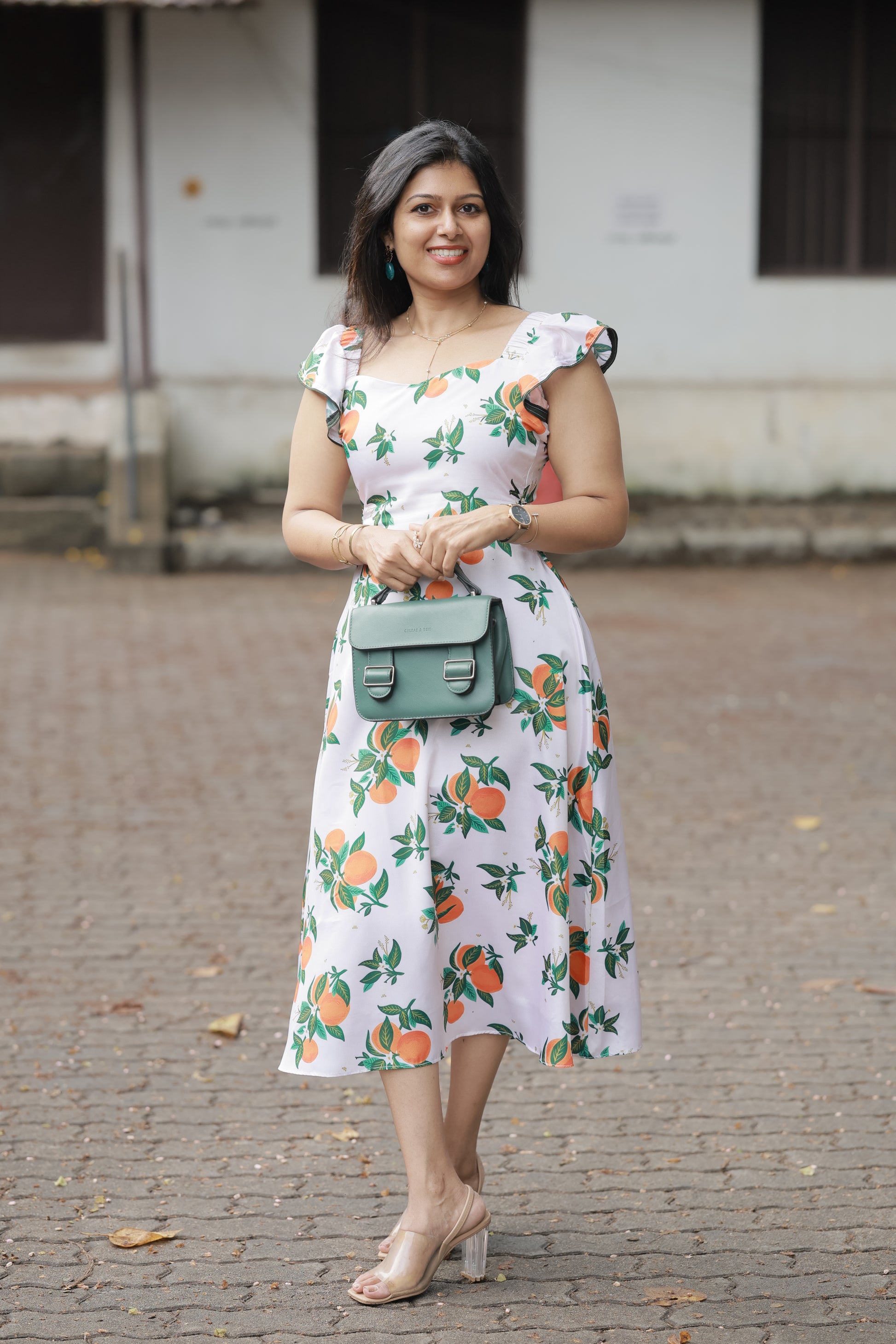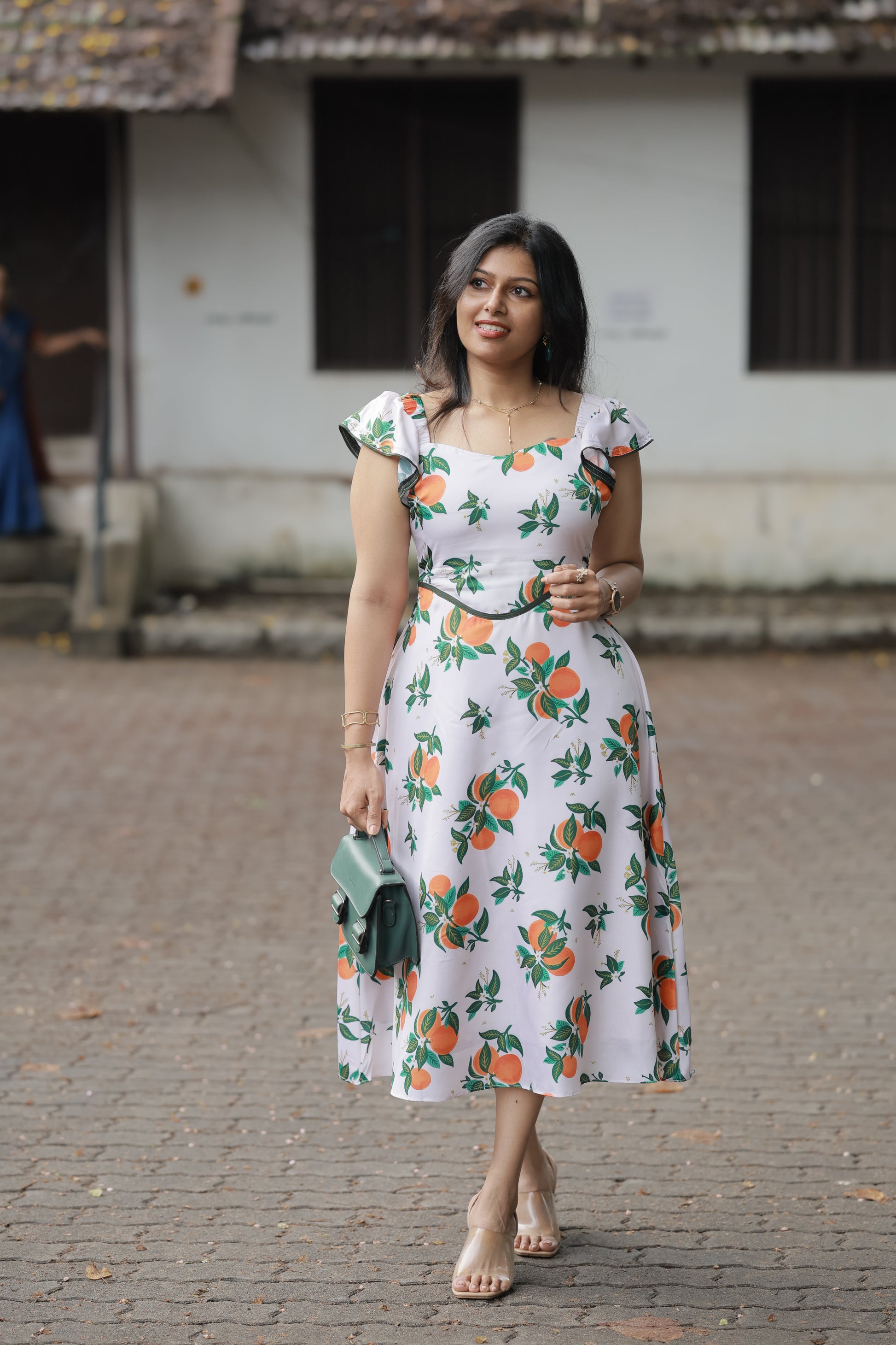 Turn every sidewalk into your runway with Tangerine — a breezy beauty that blends playful charm with effortless elegance. Crafted from luxurious moss crepe silk, this dress flows with every step, keeping you cool, confident, and camera-ready all day long.
