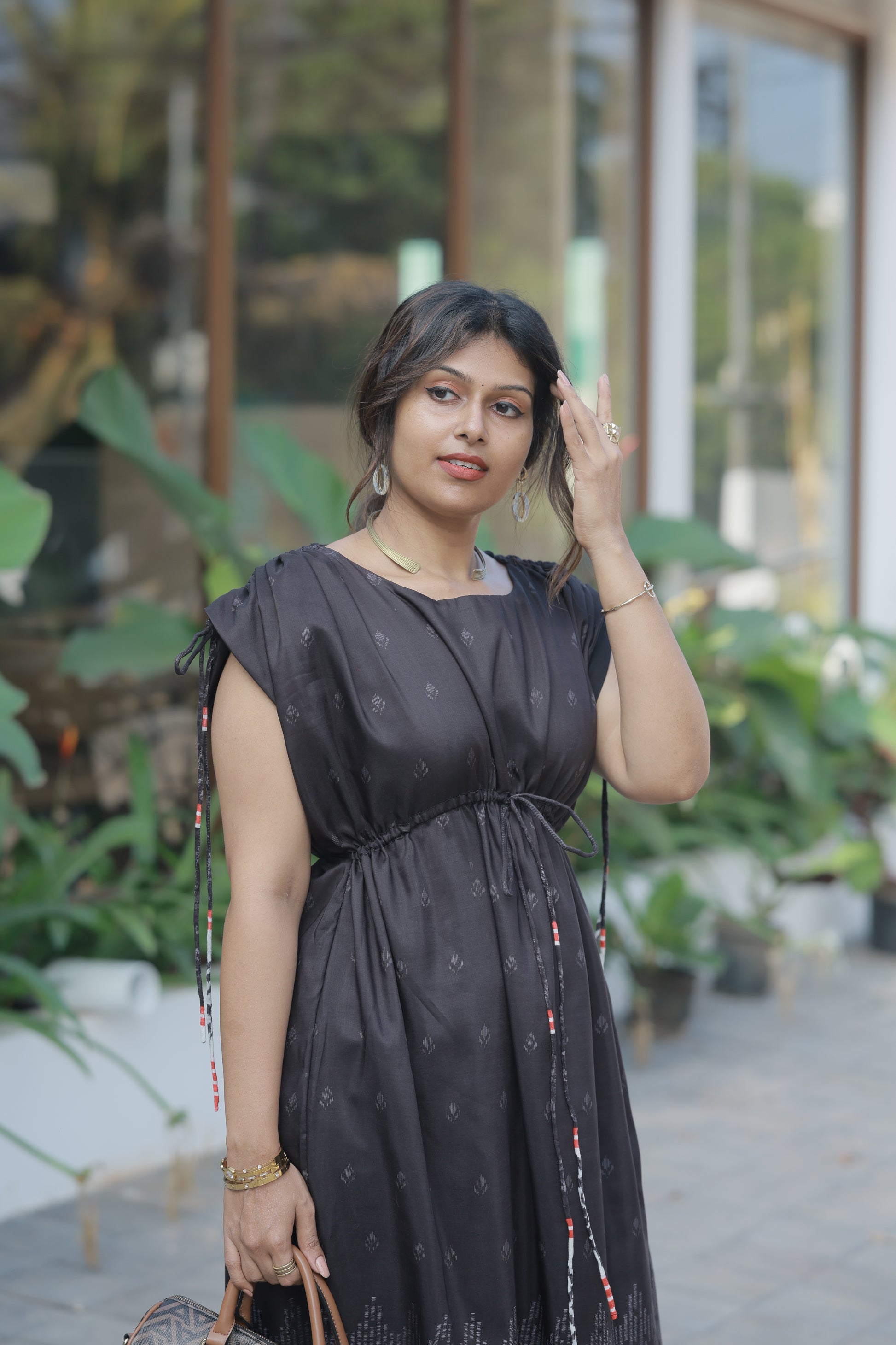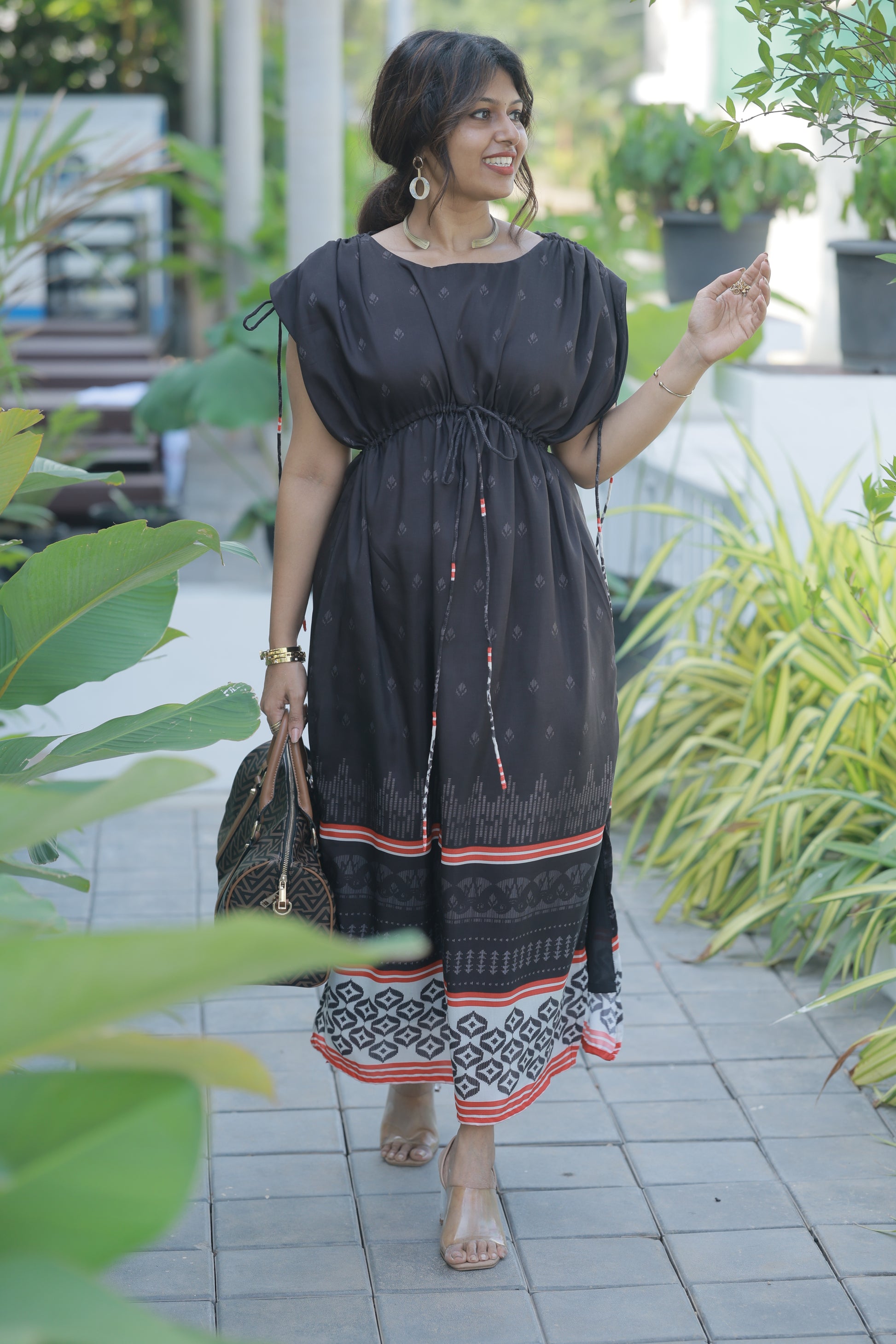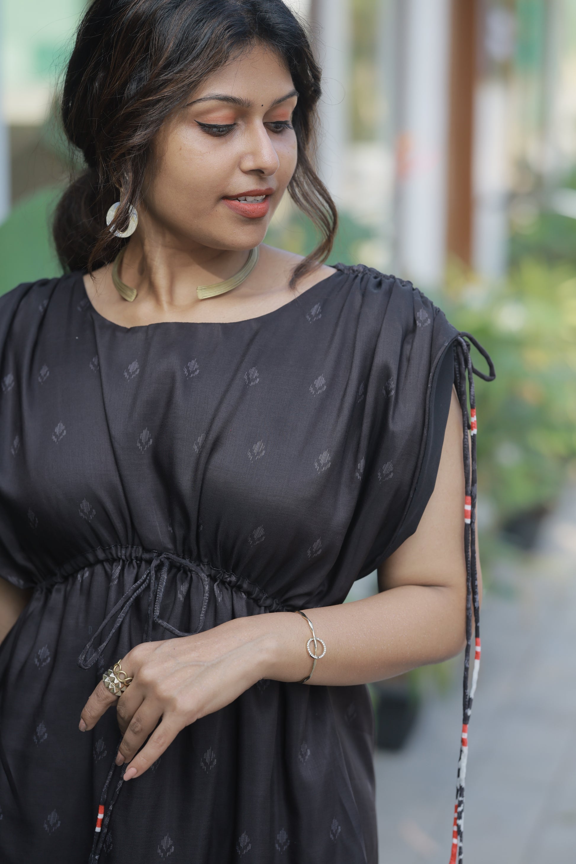 Meet your new wardrobe obsession. The Urban Black isn't just a dress—it's that effortless piece you'll reach for again and again. Crafted in luxurious masleen print fabric, this stunning black maxi features delicate all-over motifs that catch the light beautifully and photograph like a dream.