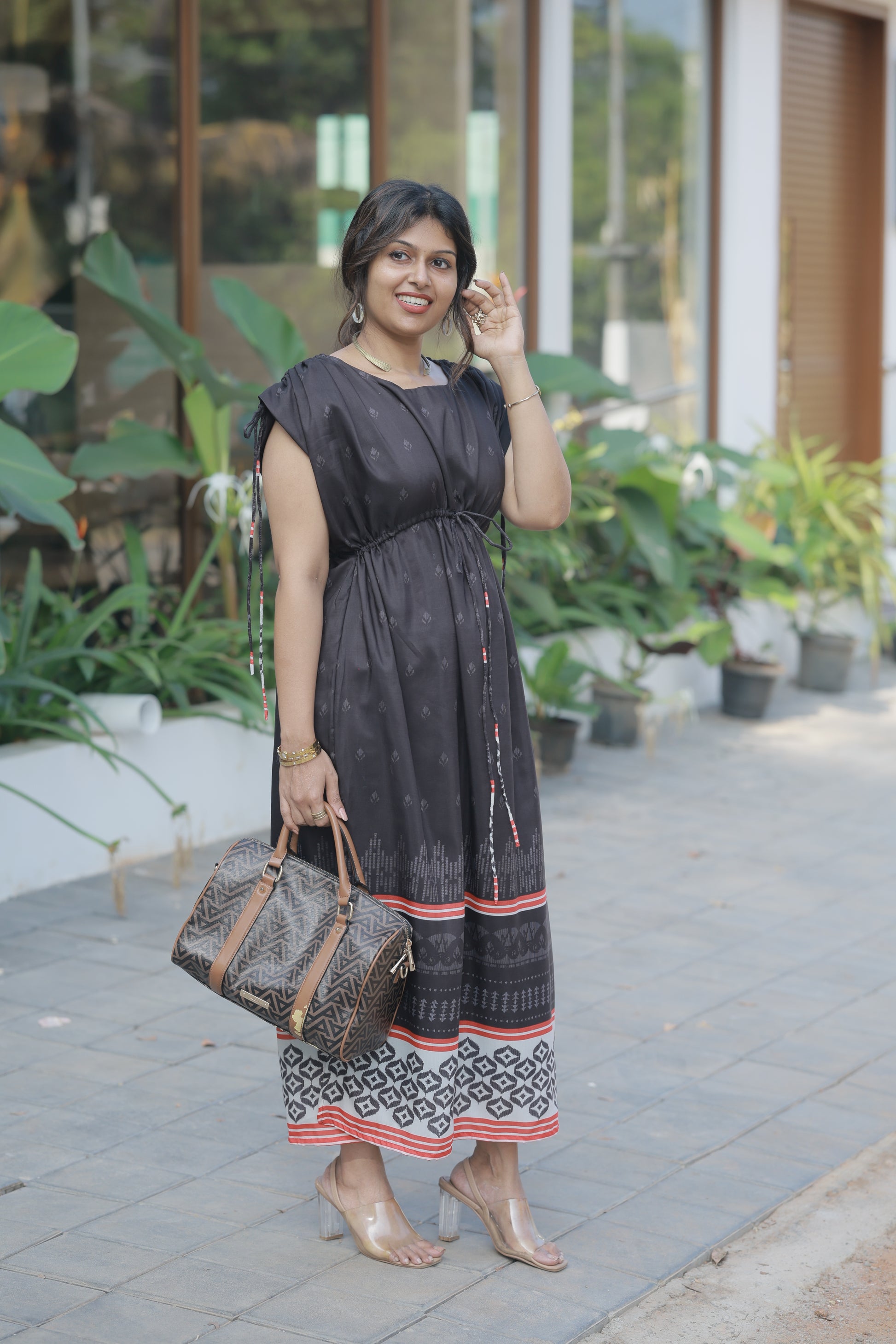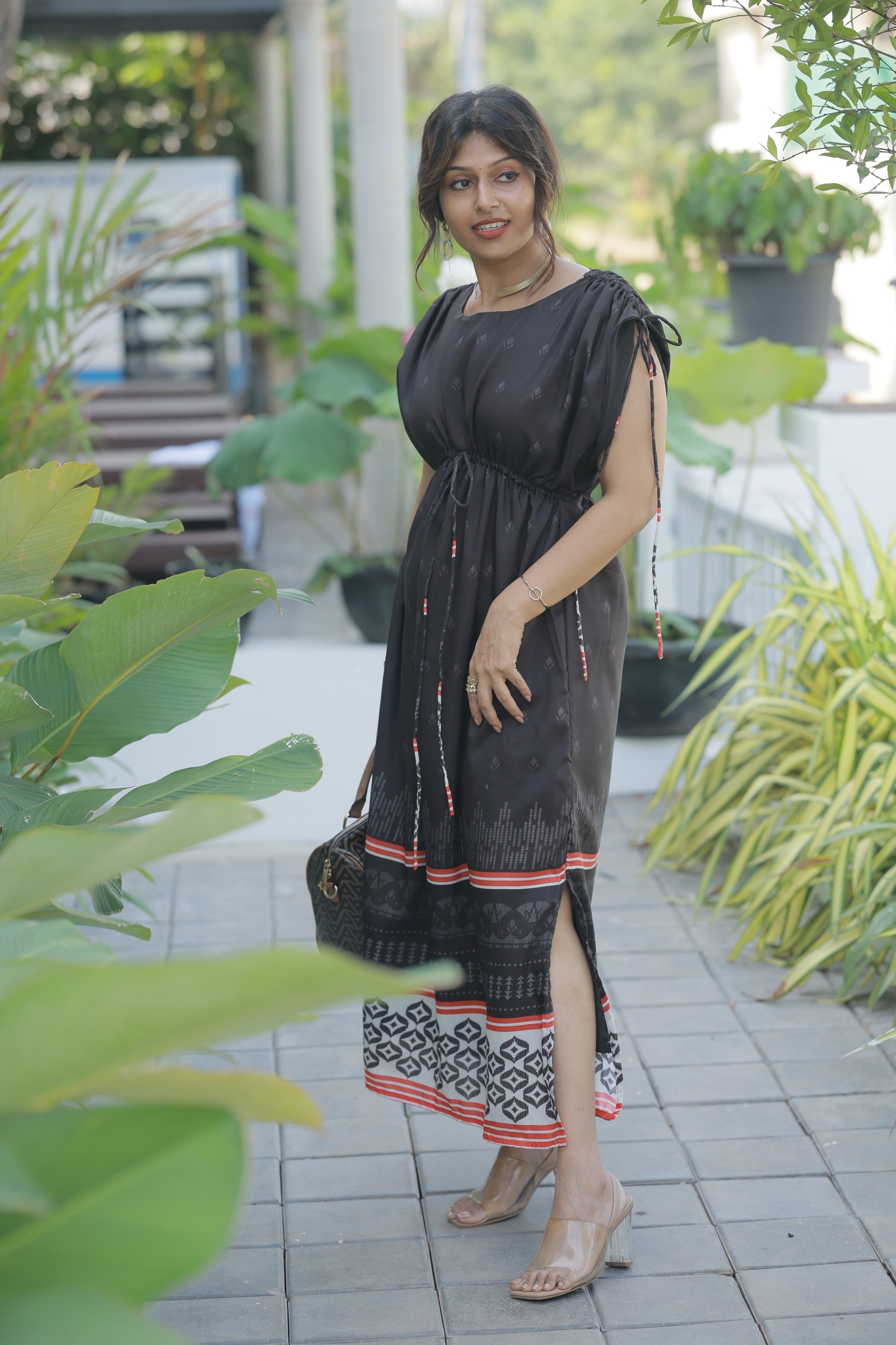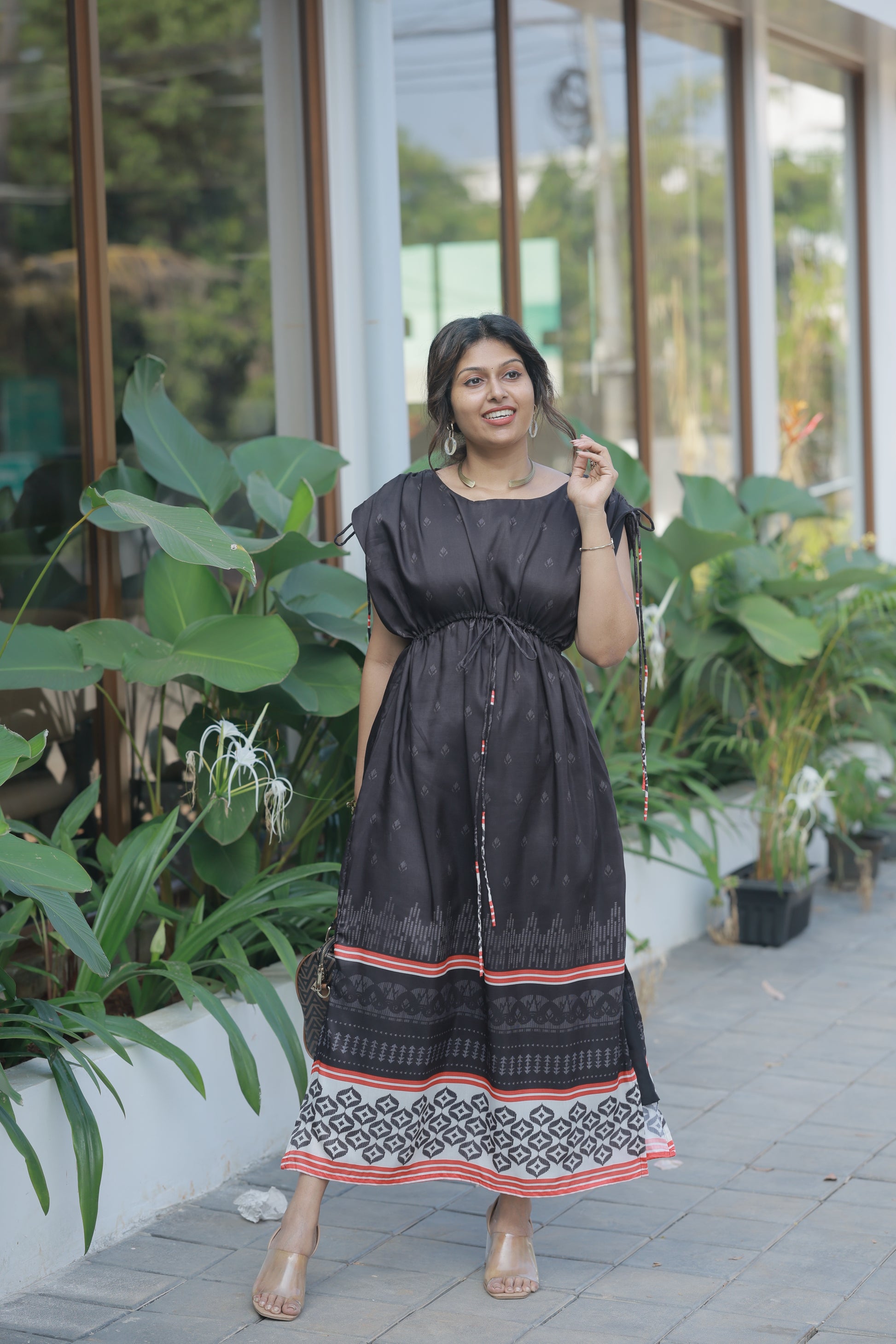 Meet your new wardrobe obsession. The Urban Black isn't just a dress—it's that effortless piece you'll reach for again and again. Crafted in luxurious masleen print fabric, this stunning black maxi features delicate all-over motifs that catch the light beautifully and photograph like a dream.