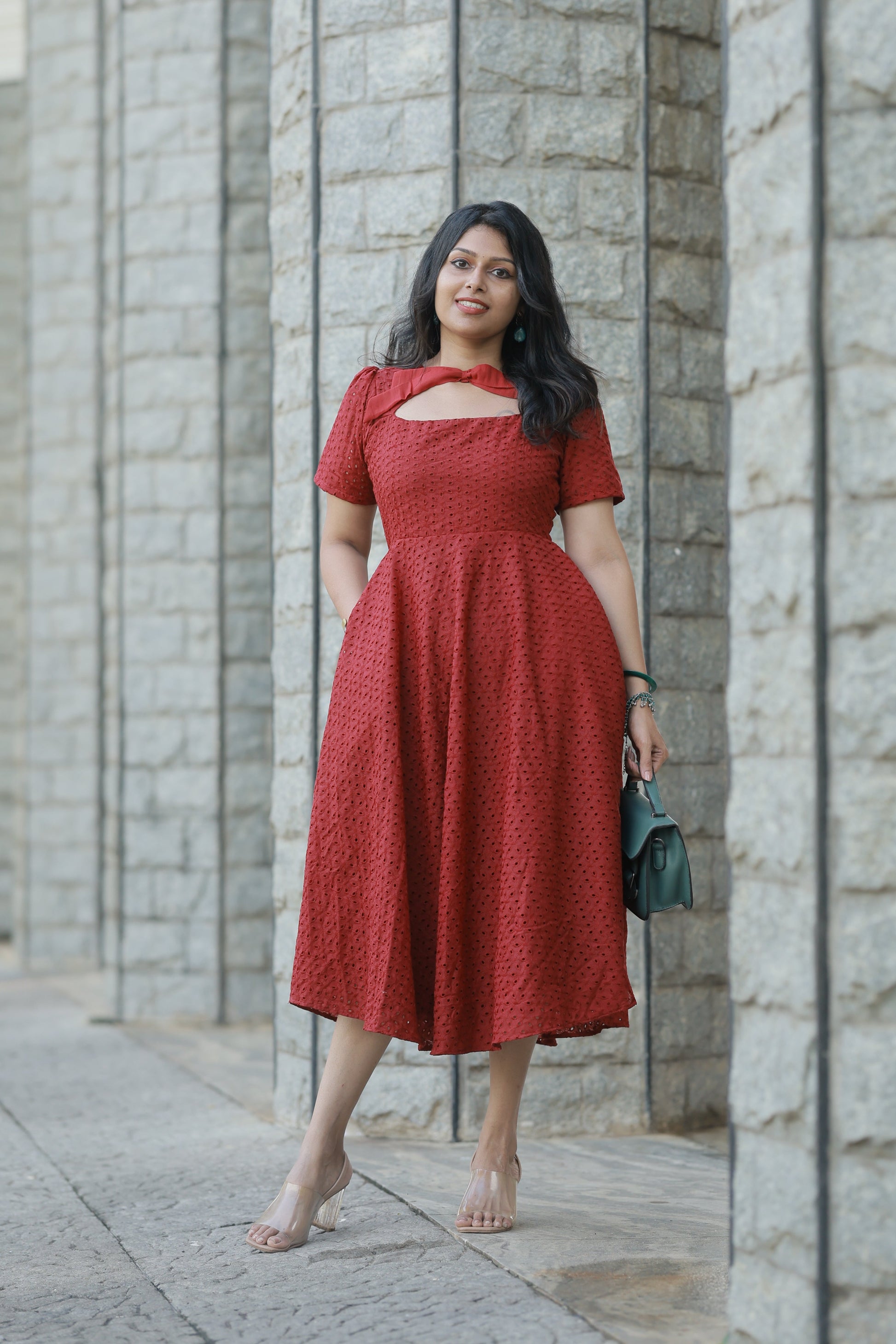 Meet Winter Holly – your go-to Christmas showstopper in rich festive red. This sophisticated midi dress combines timeless elegance with modern romance, making you the best-dressed at every holiday gathering.